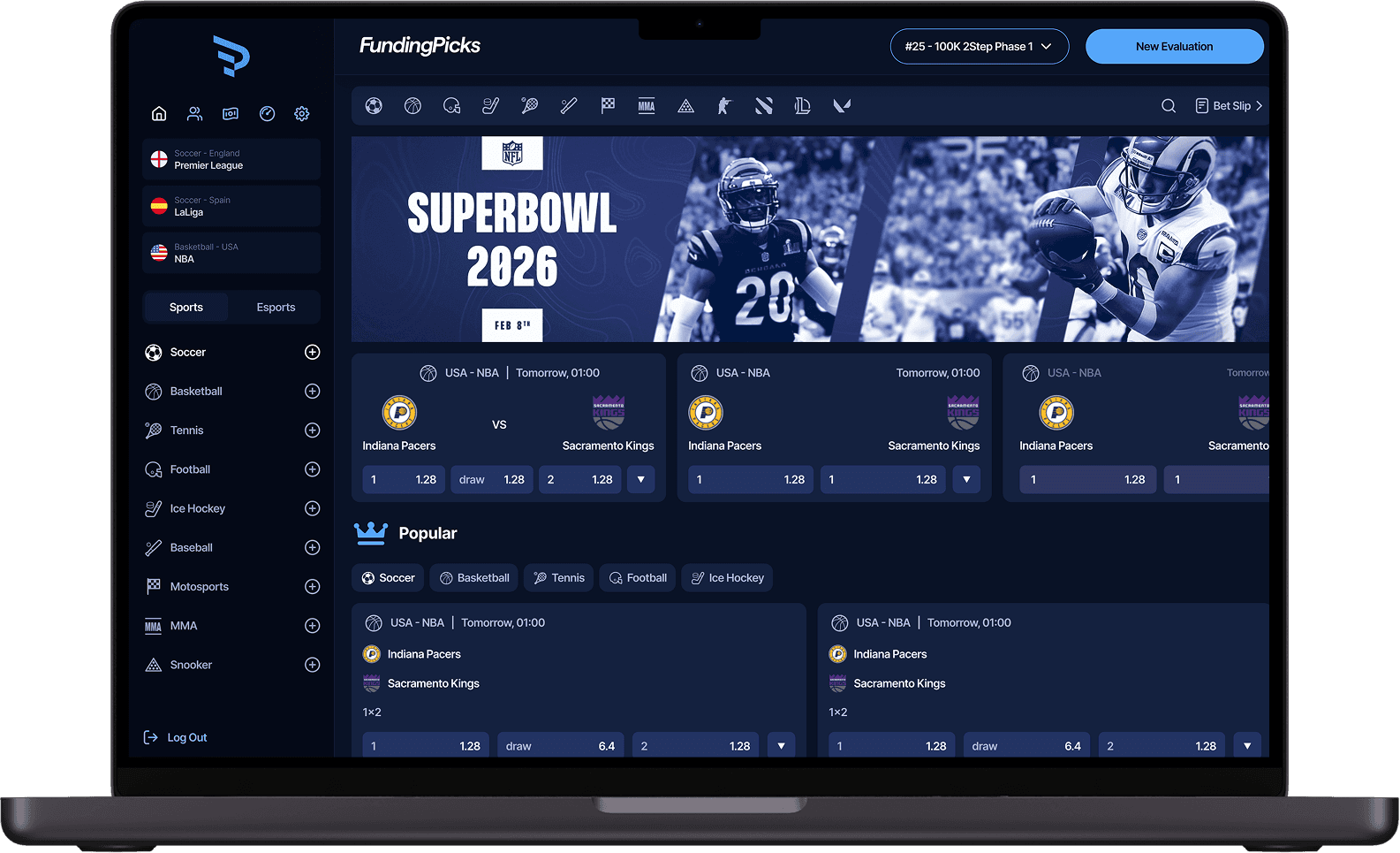 FundingPicks provides a virtual evaluation environment where users can demonstrate skill, discipline, and strategy across sports-based scenarios. You purchase an evaluation, follow the performance metrics, and once completed successfully, you may qualify for our Performance Reward Program. All activity takes place in a virtual environment. No wagers or real-money bets are placed.